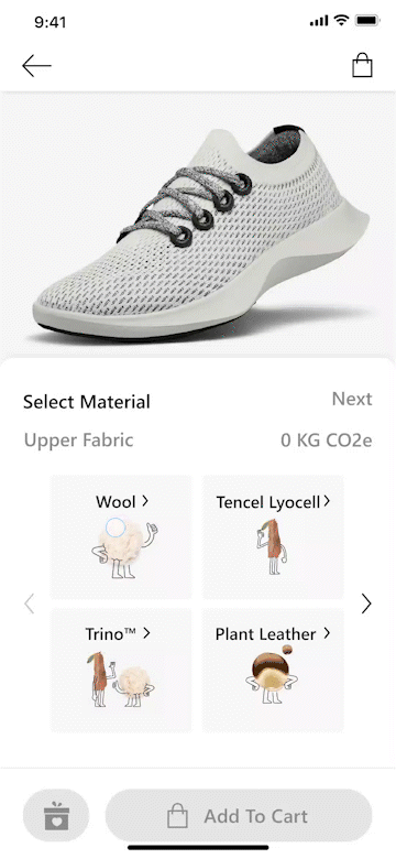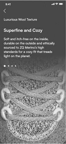 The mobile apps provide Allbird customers an interactive and enjoyable shopping experiences by extending the journey to build a connected community with displays of customer-friendly information on products and services.