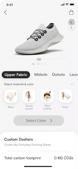 CO2e customizable runners, an interactive feature empowers customers with more personalized options.