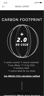 It provides Allbird customers conscious consumerism through interactive and unique shopping experience. Customers can count the carbon footprint they make, and extend the journey to build a connected community with displays of customer-friendly information on products and services.
